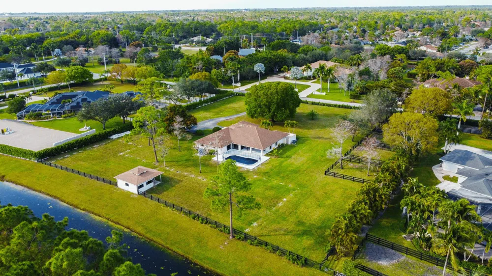 Luxurious Equestrian Estate in Wellington's Paddock Park 2 Nestled on 2.2 acres, this 4-bedroom, 3-bathroom estate is a dream home for equestrian enthusiasts and those seeking refined living. Designed for equestrian living, this property boasts a 2-stall barn with a feed room and 5 paddocks, with space to expand for a larger barn or riding arena. Recent upgrades, including two new A/C units and a reverse osmosis system, provide modern comfort and efficiency. Step inside to light-filled living spaces that blend elegance and comfort. The formal living and dining areas are perfect for hosting, while the open floor plan ensures effortless flow. A gourmet kitchen with granite countertops invites culinary creativity, while wood flooring in the bedrooms and tasteful tile in common areas add warmth and sophistication. The primary suite is a private retreat, featuring a spa-like ensuite with a Roman tub, separate shower, dual sinks, and an expansive walk-in closet. Outdoors, your private oasis awaits. A resort-style pool, sandblasted marble decking, and waterfront views create a serene escape, while the spacious patio offers the perfect setting for relaxing or entertaining. Located in the heart of Wellington, this estate is just minutes from world-class equestrian facilities, top-rated schools, fine dining, shopping at Wellington Green Mall, and easy access to Southern Blvd. This exceptional property combines luxury, comfort, and equestrian potential in one of Florida's most desirable communities. Schedule your private showing today! All Measurements are only estimates.