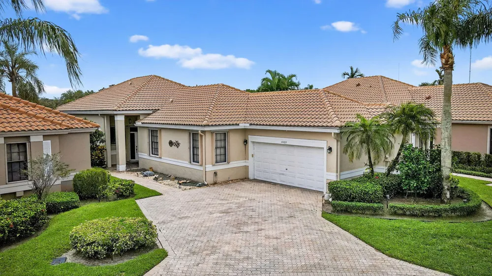 Beautifully renovated 3BD/2.5BA single-family home on a pie-shaped large lakefront lot with private water views. This open-concept home features a modern kitchen with white cabinetry, quartz counters, large sink, stainless steel appliances, bar seating, and electric solar shade window treatments. Crown molding and tile flooring runs throughout with no thresholds for a seamless look. Spacious primary suite offers lake views, patio access, fitted closets, & an updated bathroom w/ frameless walk-in shower. The second bedroom includes an en-suite bath, while the third bedroom/den is perfect as an office or guest room. Enjoy outdoor living on the expanded screened patio with travetine tile floors & electric awning. Epoxy garage floors, golf cart negotiable. Accodion shutters & Impact Slider.