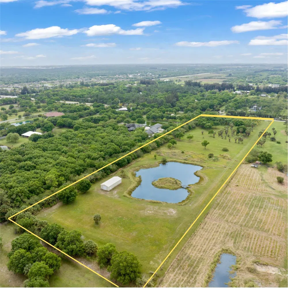 Exceptional opportunity to own 9+ acres of pristine, fully fenced land in popular central county area of Vero Beach. Situated on a paved, no-through road, ensuring privacy and tranquility, yet minutes to all the amenities. Adorned with majestic oaks, mature palms, and a stocked pond, the natural beauty is abundant. An artesian well, 1300 sq. ft. metal building, and raised building pad are in place. Whether you're looking to build your dream or use it as an investment, this land offers a unique chance to create something extraordinary. No HOA, no restrictions, possible one-time parcel split.